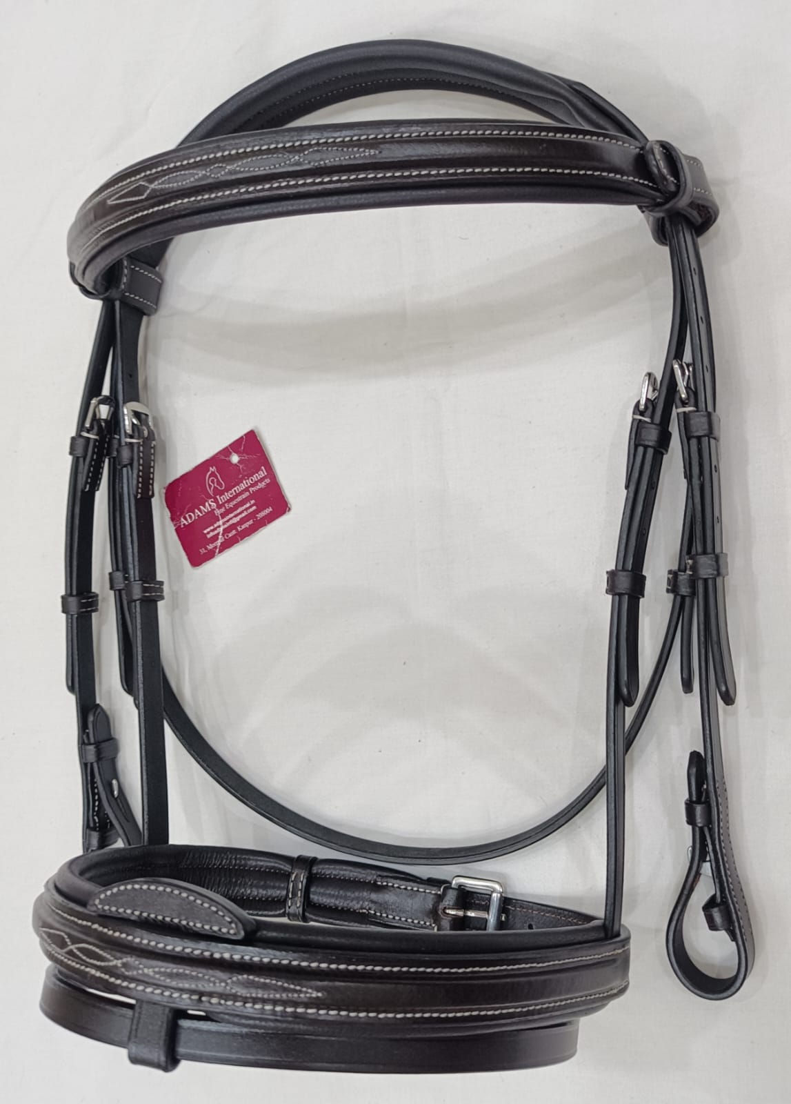 <b>Fancy stitched Padded Dressage Bridle</b><br><ul><li>Padded Dressage bridle has a padded caveson with removable flash, and padded velcro browband</li><li>Single crown for horse comfort</li><li>Stainless steel hardware throughout</li><li>leather goods collection offers bridles, girths, browband, leather stirrup, and halter in traditional styles at a great value. </li></ul>This bridle has a padded French cavesson with removable flash and padded browband.