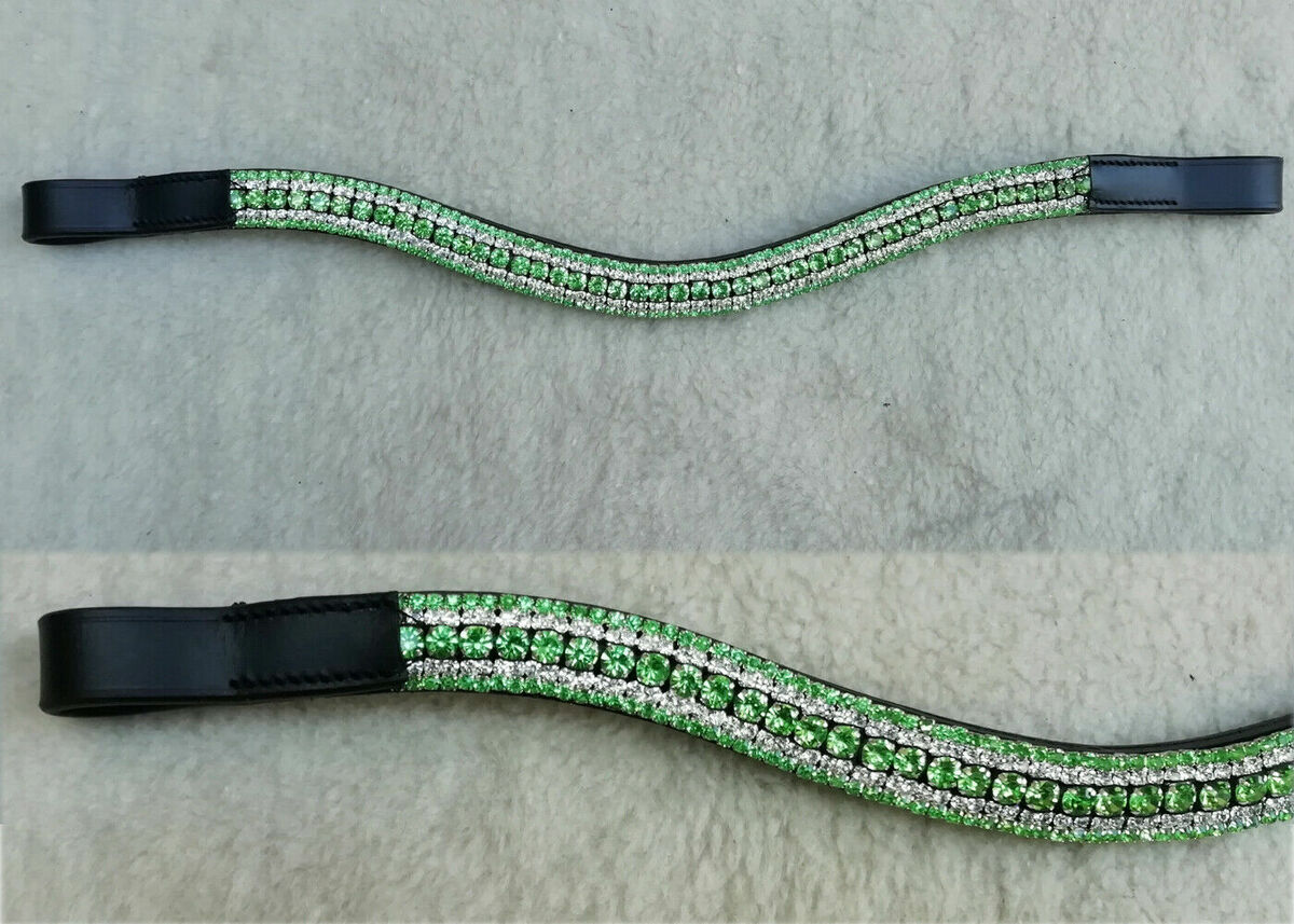 Curved Style Browband in handstitched luxury genuine leather.. Now choose between black or brown (Havana) leather colour, and your large middle crystals, pearls or beads and both rows of the smaller, outer crystals for a fully bespoke custom browband that is unique just for you or to co-ordinate with that cheeky matchy matchy set you’ve had your eye on.