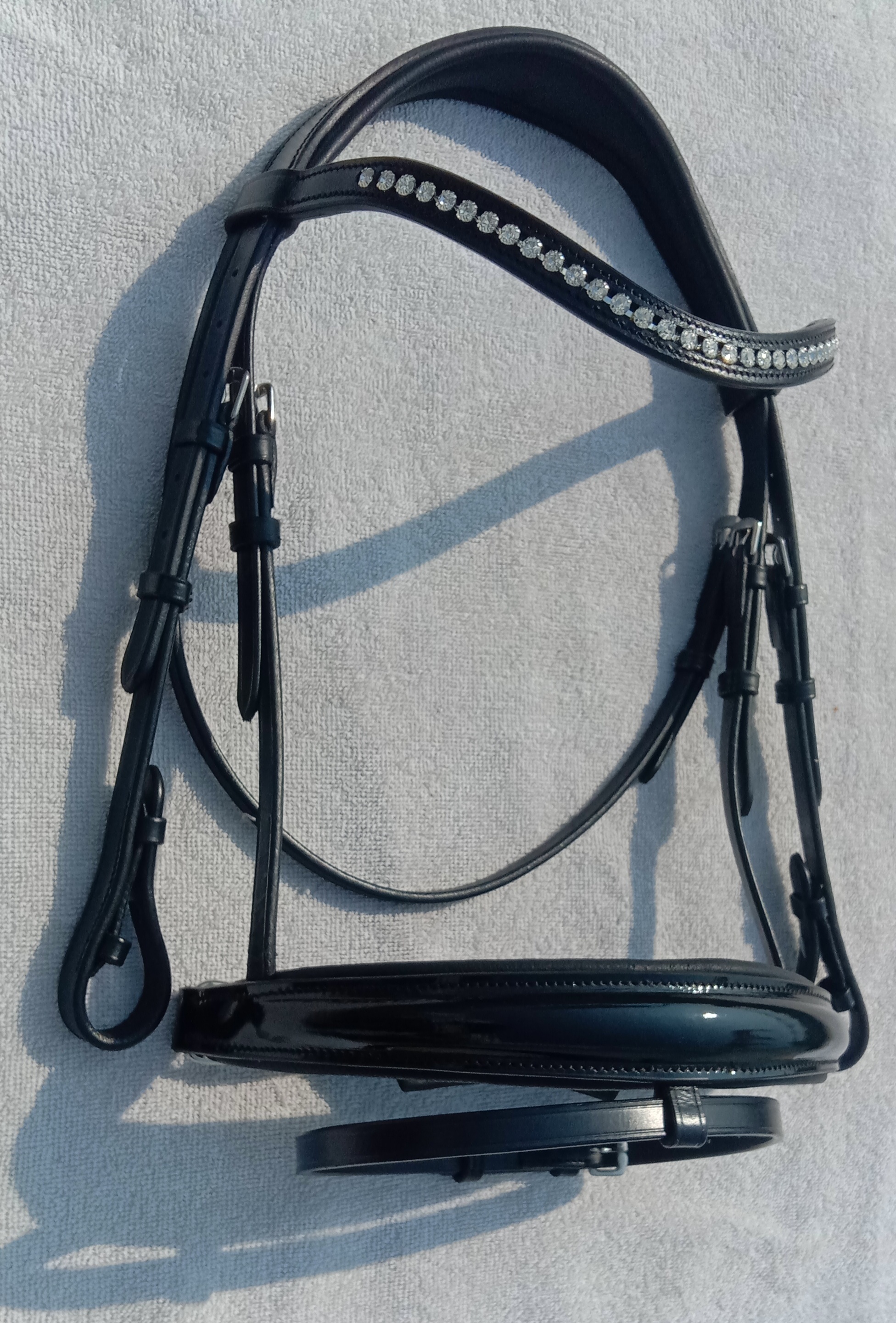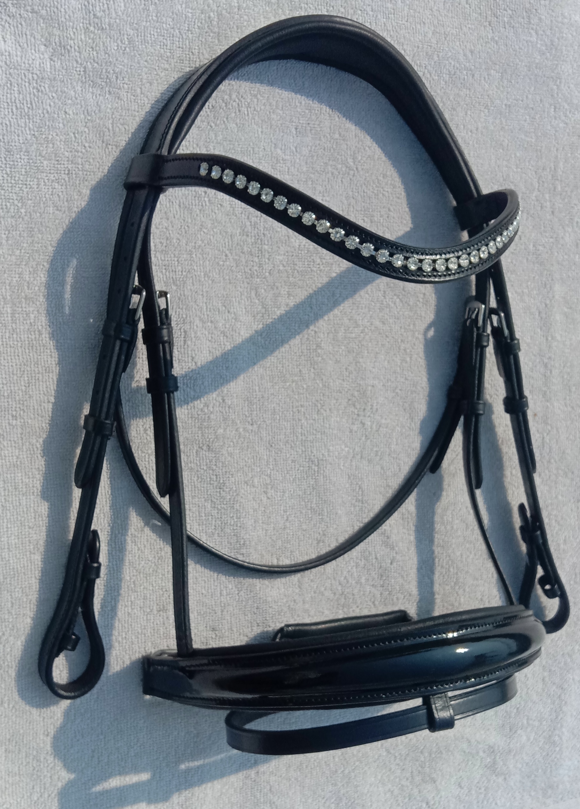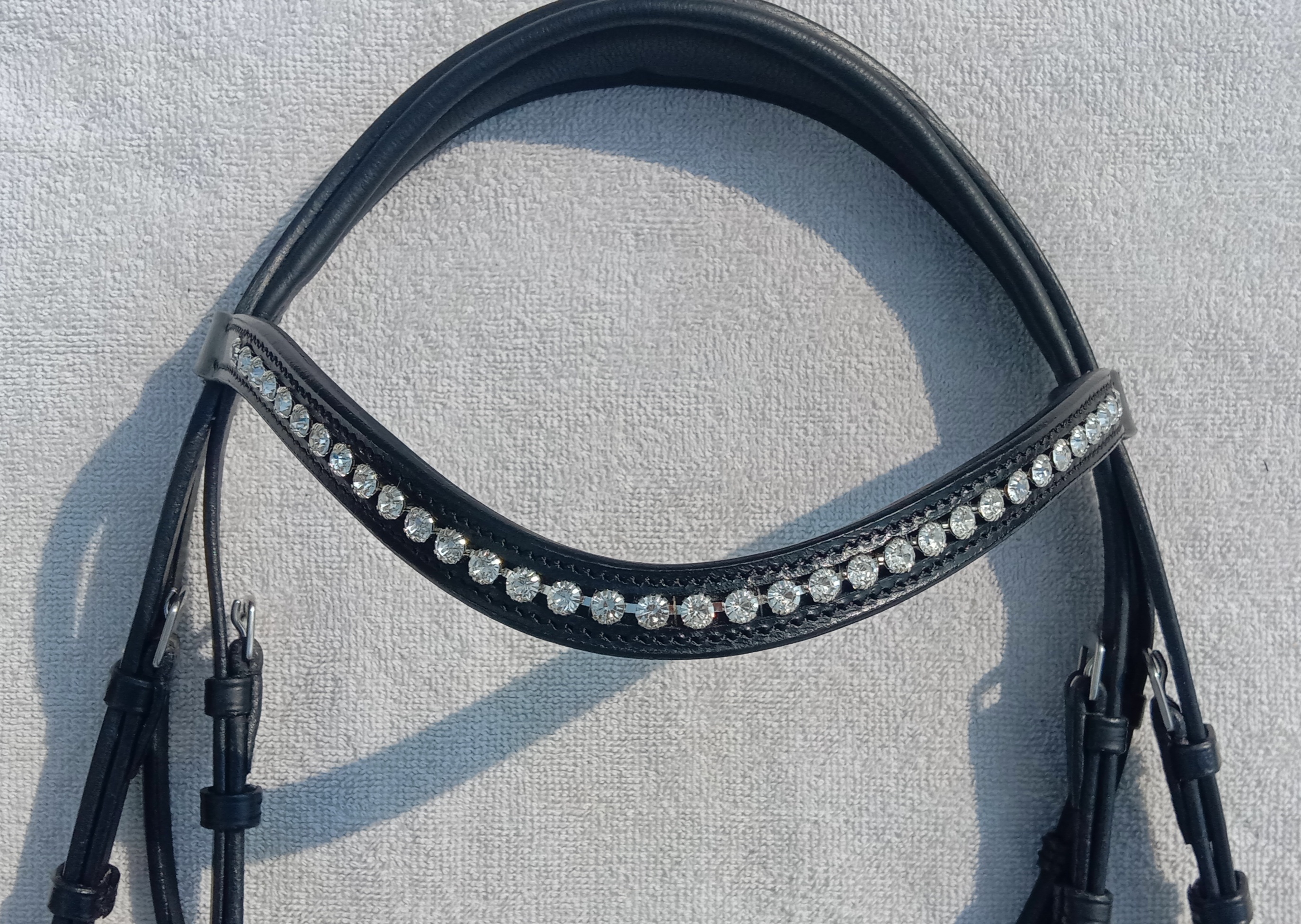 <ul><li>Premium quality Finished in Black Leather (Customization available).</li><li>The Browband Consists of High Quality 6 mm diamond stones</li><li>Stainless steel fittings are used as they are highly durable and long lasting. (Customized hardware fiitings).</li><li>It comes With web Reins.</li><li><span>Noseband with flash<br></span></li></ul>