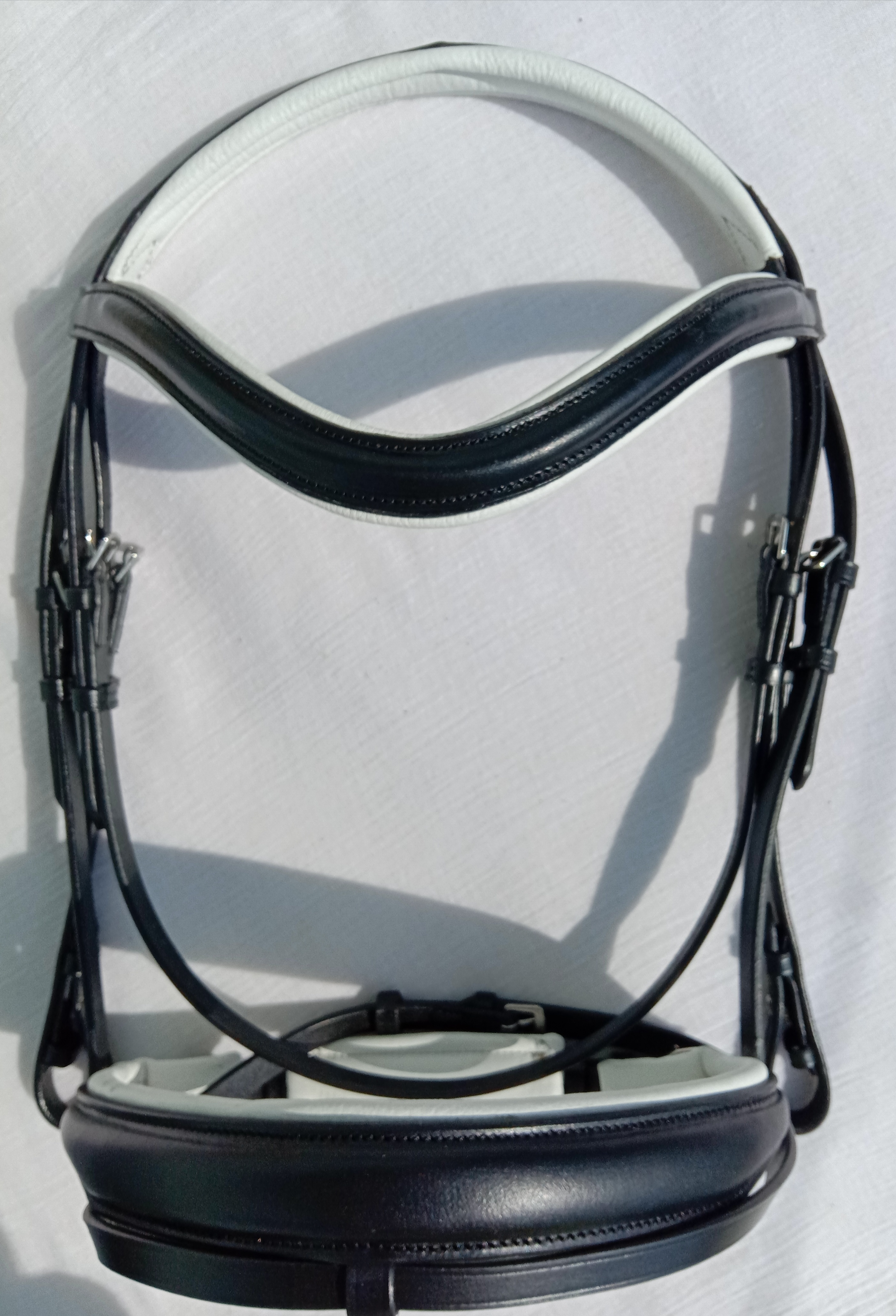 A premier & beautiful Dressage Bridle from the house of Bridles & Reins. Comfort lined with white piping<span> classically curved noseband along with beautiful raised browband.<br></span>This is a very rich quality product crafted with premium quality leather<span> which is the best and foremost used around the globe and delivers a smooth finish along with attractive looks for training purposes & show rings.<br></span>Smoothly finished and curved with special polish & lacquered on premium quality Buckles for long-lasting results.<br>