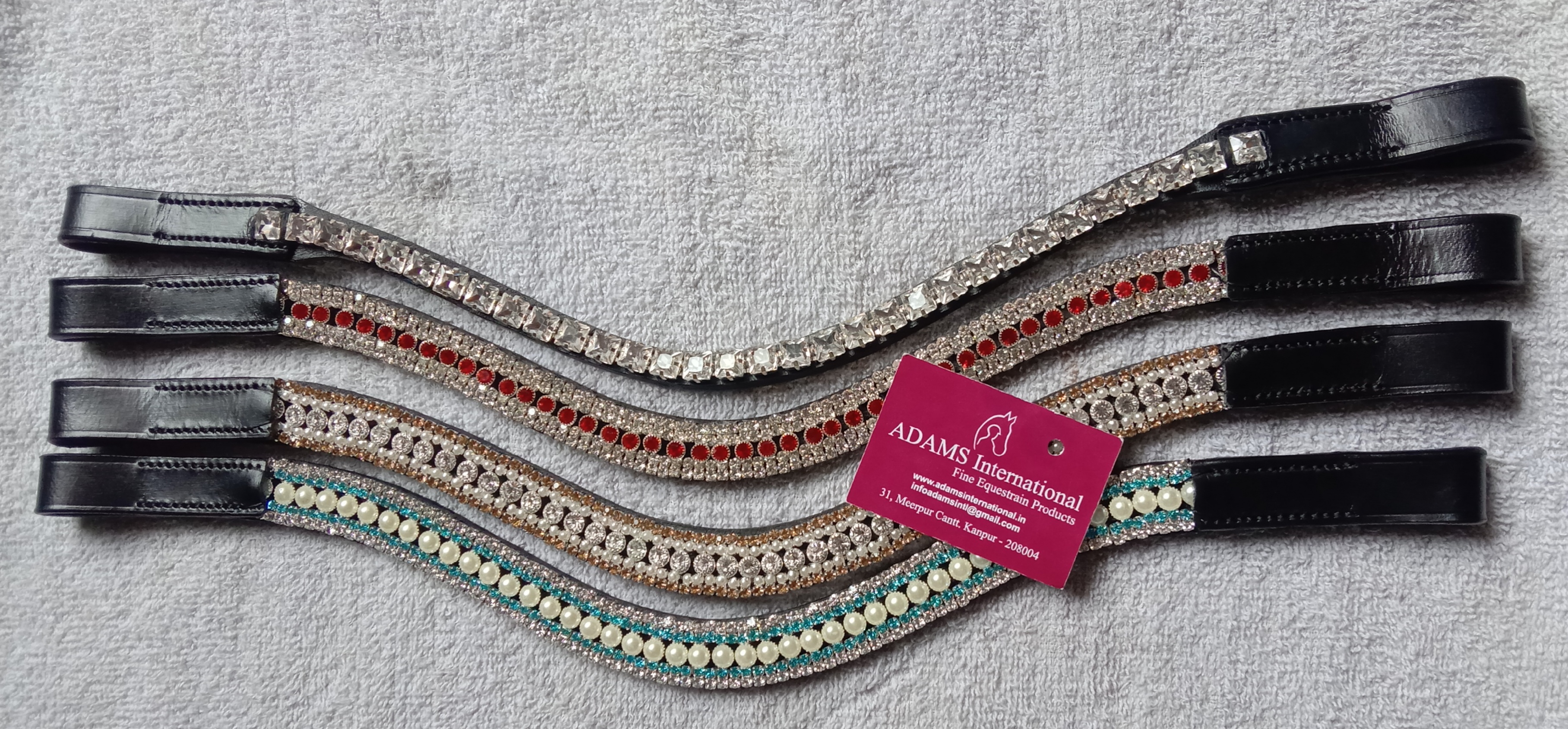 <span>You can Select leather colour and crystal color as per your choice.<br>Crystal Wave Browband is gently curved to best fit and accentuate your horse’s head. This contemporary, yet classic browband can withstand the rigors of daily use.<br></span><span>Each browband is handmade by skilled craftsmen from quality, soft leather and finished by hand in India.<br></span>To clean, use a quality leather cleaner and take care not to get any cleaning agents on the crystals.<br>