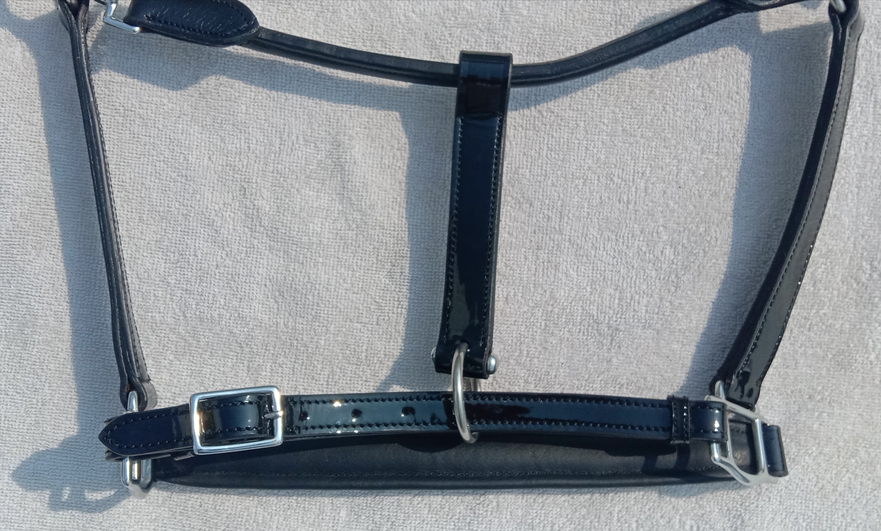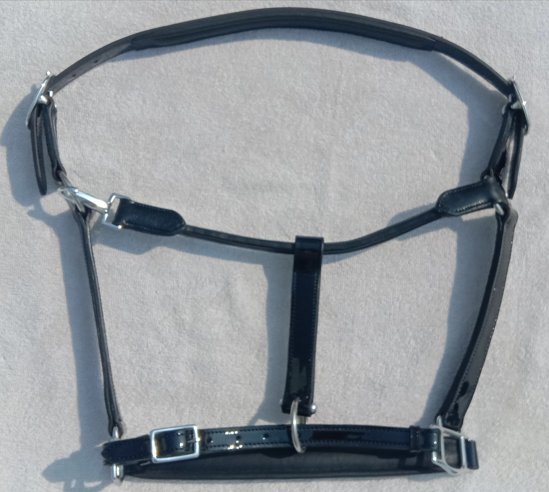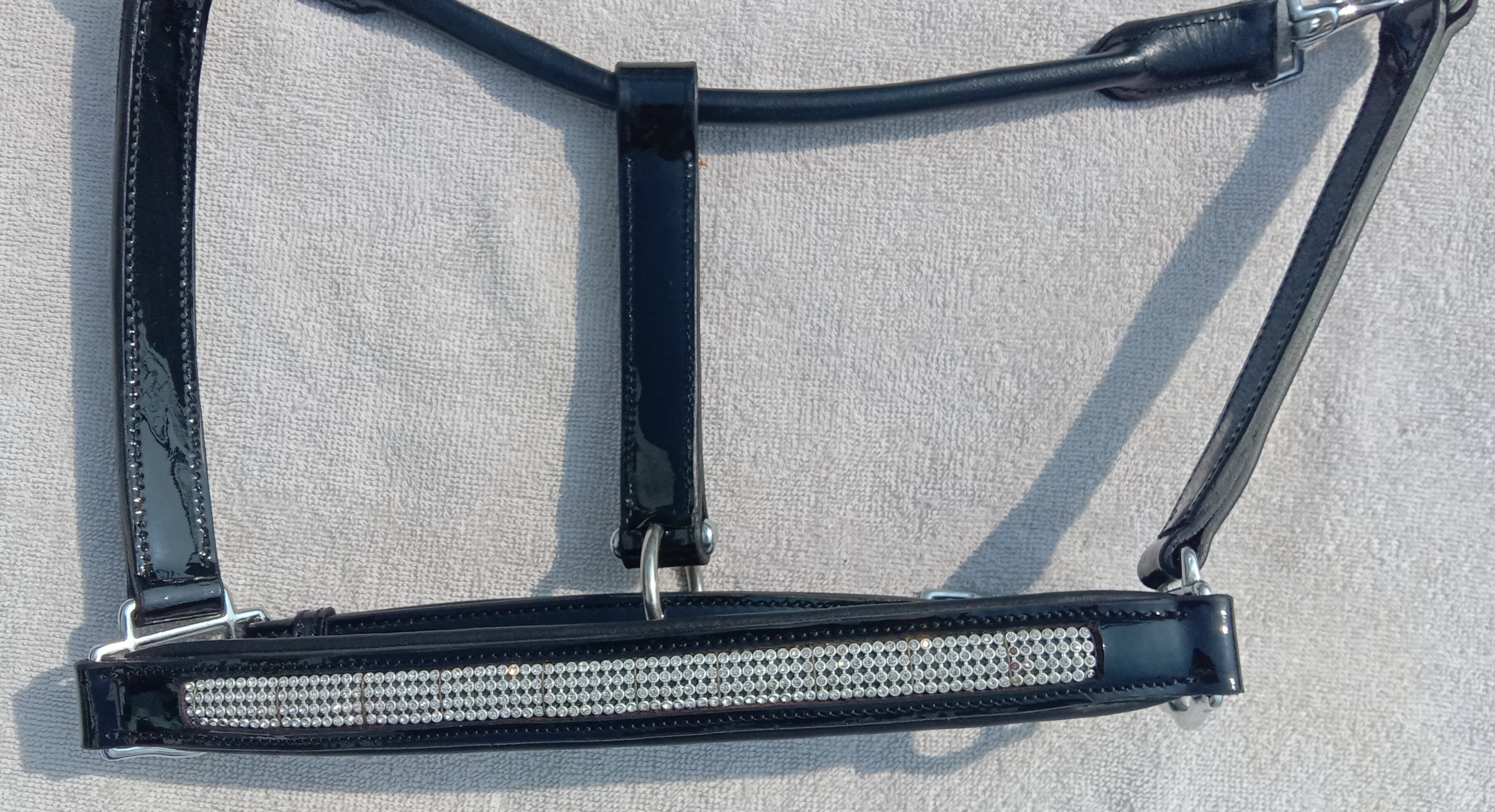 <h1>Classic Patent Leather Halter</h1><ul><li>Made with genuine leather, soft padding to ensure long lasting comfortable wear</li><li>Embellished crystals</li><li>Impeccable dedication to craftsmanship</li><li>Hardware: SS Stainless steel,Brass and rose gold Non Rust Hardware</li><li>Adjustable on both crown and nose</li></ul>